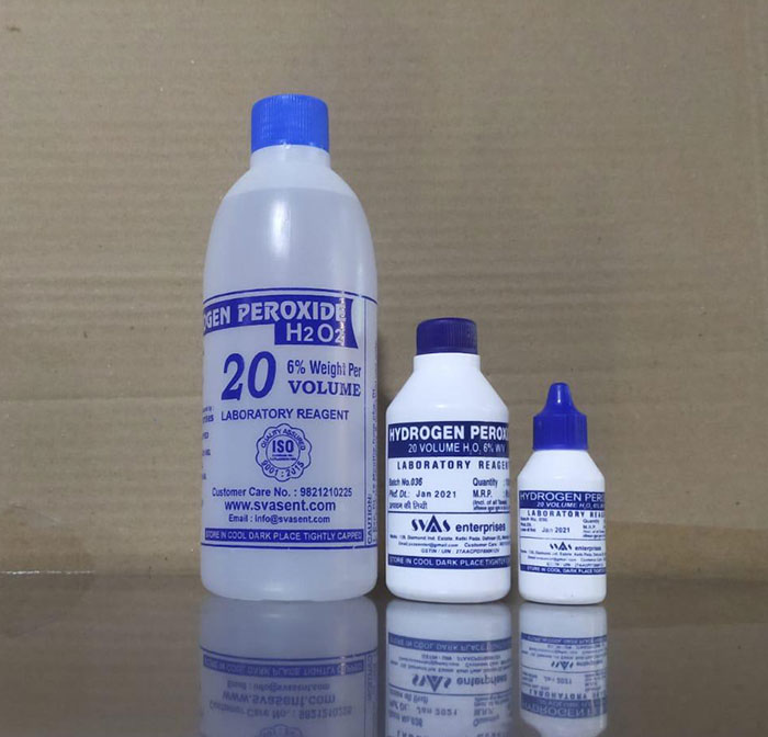 This indicates that the hydrogen peroxide is of a purity suitable for laboratory use, often abbreviated as “L.R.” to distinguish it from industrial or technical grades.